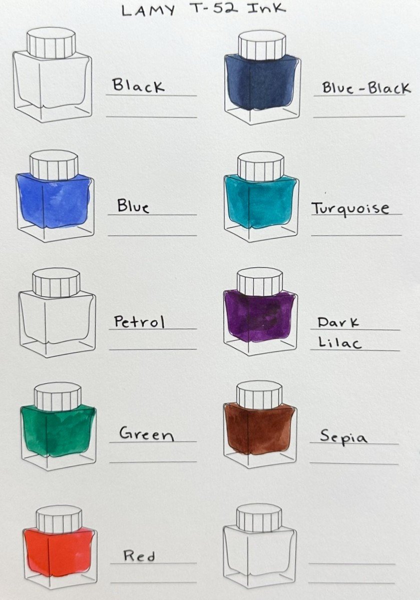 Ink bottle 50 ml with ink residue collecting basin / plastic base with blotting paper roll